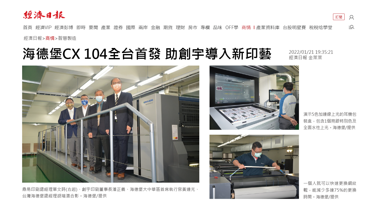 海德堡CX 104全台首發 助創宇導入新印藝 -【經濟日報報訊】